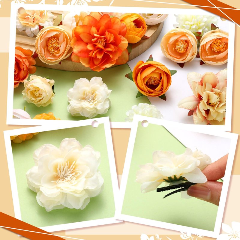 BBTO 21 Pieces Flower Hair Clip Rose Hair Clips Hair Barrettes for Women Flower Hair Accessories Boho Bride Claw Clip Hairpin Brooch Pin Headpiece for Girls Wedding (Orange)
