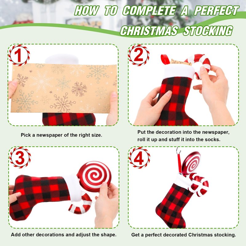 - Easy hanging and filling: these stocking candy holders are attached with a red ribbon on the top, which allows you to easily hang the stocking on the tree, window stage, door, fireplace, ceiling or other places; You can use the bags to hold candy, gifts, jewelry, tableware such as spoons, knife, forks, bags and so on as gifts for Christmas and New Year