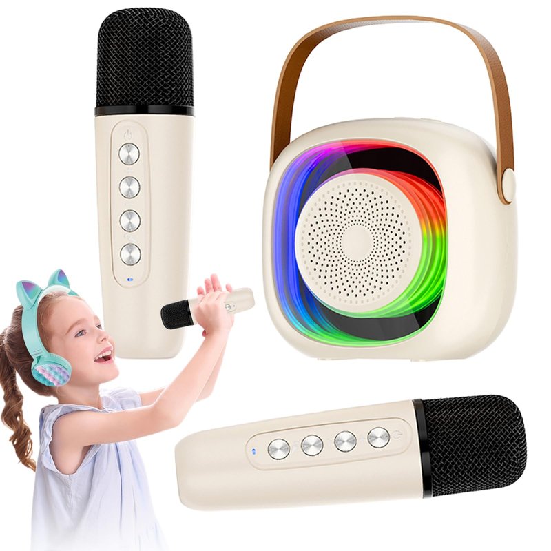 BCFHYK Mini Karaoke Machine for Kids Adults, Portable Karaoke Machine,Bluetooth Speaker with Dual Wireless Microphones and LED Lights, Birthday Gifts for Girls Ages 4, 5, 6, 7, 8, 9, 10, 12