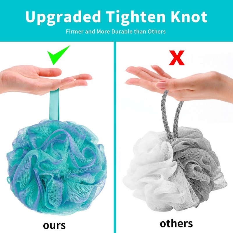 - Strong Knotting Design: The improved version of the loofahs adopts special reinforcement and knotting technology, which greatly enhances the firmness and durability of the internal connection of the bath sponges.