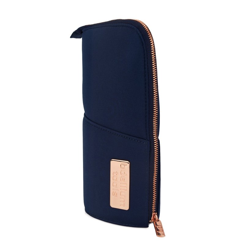 The Golden Triangle Stand-Up pouch is an innovative accessory that not only stores your makeup brushes, but keeps your brushes standing upright to provide easy access and neat organization. The top edges of the pouch can also be folded down to turn the pouch into a brush cup. Within the pouch is a removable velcro strap that gives you the option to make another section to help you divide your bigger brushes from your smaller ones. Whether you are on vacation or traveling for work, this case will definitely keep your brushes safe and secure. Available in two colors, black and blue.