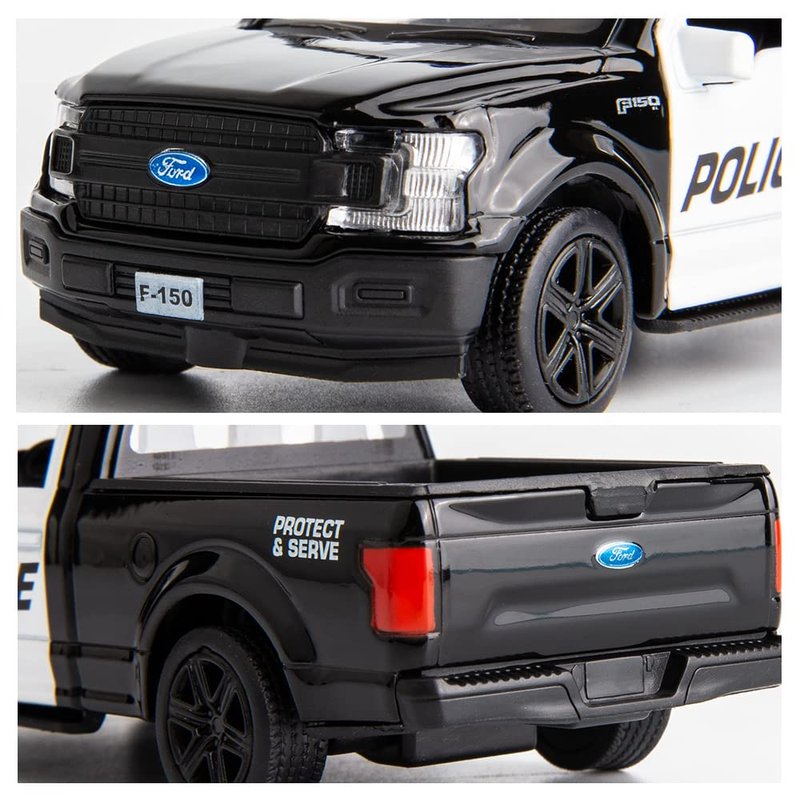 BDTCTK 1/36 Scale Compatible for Ford F150 Pickup Truck Police Car Model, Zinc Alloy Die-Cast Pull Back Vehicles Kid Toys for Boy Girl Gift (Black)