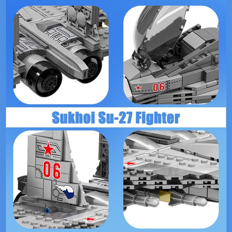 - This Fighter Model Building Blocks Set is based on the prototype of Sukhoi Su-27 Fighter.Excellent building blocks and exquisite details showcase the Fighter's posture from every angle.