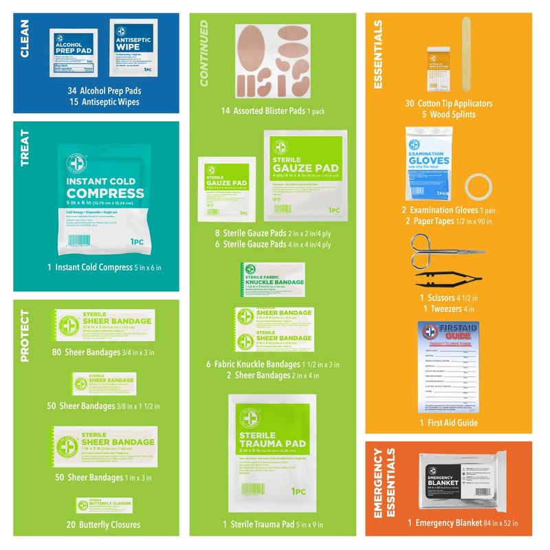 Be Smart Get Prepared 330 Piece First Aid Kit, All-Purpose: Clean, Treat, Protect Minor Cuts, Scrapes, Home, Office, Car, School, Travel, Emergency, Survival, Outdoor, Camping & Sports, FSA HSA
