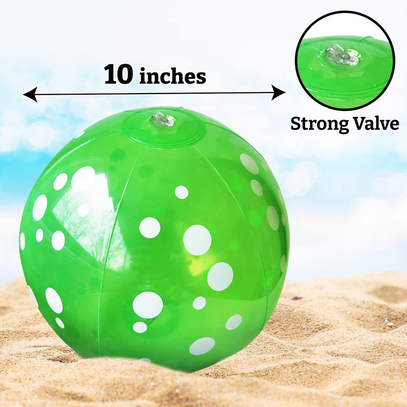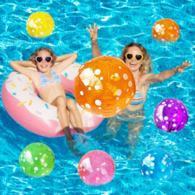 Lively Polka Dot Beach Balls for Endless Summer Fun. Brighten up your beach or pool party with this vibrant set of polka-dot beach balls. Unlike plain beach balls, these eye-catching balls IS A STRONG PVC BALL AND feature a unique polka-dot design that is sure to stand out. Strong Here's what makes these a must-have for your summer fun: Unique Design. Each of the six beach balls has a distinctive polka dot pattern in a vivid color: orange, blue, green, red, pink, and purple. Variety Pack of Six. The set includes six different colored balls, ensuring there's enough for the whole family or group to join in on the fun. No more arguing over who gets to play with the only ball! BPA-free, Durable, and Long-Lasting. Crafted from high-quality polyvinyl chloride (PVC), these beach balls are built to withstand the rigors of outdoor play. The robust valve ensures they'll remain inflated for hours DAYS AND WEEKS of enjoyment. Versatile and Interactive. At 10 inches wide, these beach balls are perfect for a variety of beach and pool games, from classic catch and toss to volleyball, dodgeball, and more. Encourage healthy outdoor exercise and fun by offering your child this set of premium-quality balls. Party-Ready Decoration. Let these double as festive decorations for your outdoor summer party. Scatter them around for pops of color. Or use LED lights - their patterns catch the light, transforming the balls into glowing conversation pieces at night. We've got you covered with our durable beach balls. Each ball is made from top-quality rubber; it is strong, durable, and safe for kids and pets. Fun and laughter are guaranteed!