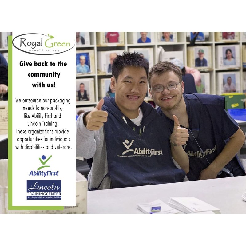 - ABOUT ROYAL GREEN: We owe our growth to customers who purchase our stickers. Royal Green is packaged by the business services program at Ability First Organization or LTC. Every purchase you make helps us make a difference.