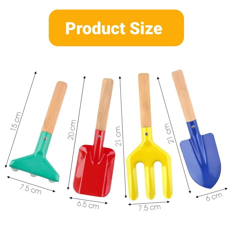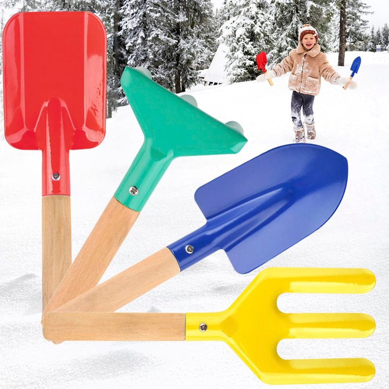 - 【Beach Shovel Tools】 This set includes Trowel, Fork, Rake & Shovel for kids.This length is 8 inches(Multiple colors).Each tool is constructed of high-quality metal, with a serviceable hardwood handle.Gifts for Children,Christmas gifts