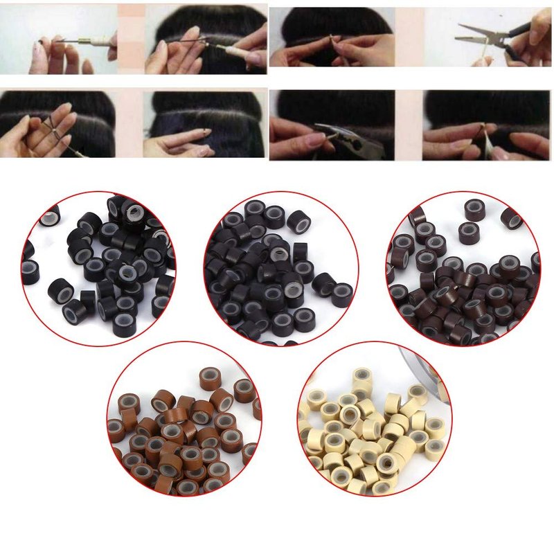 This product is hair extension ring, a great accessory for hair extension. It is made of high quality material, which is safe to your hair and environmental friendly. Comes with 500pcs in one bottle is very practical. With very soft silicone lining, which allows you to install them to the head for maximum comfort to the client and undetectable. It holds human hair very tightly after pinched and it will not easily get slide when wearing. Available in 5 colors, you have more selection.
