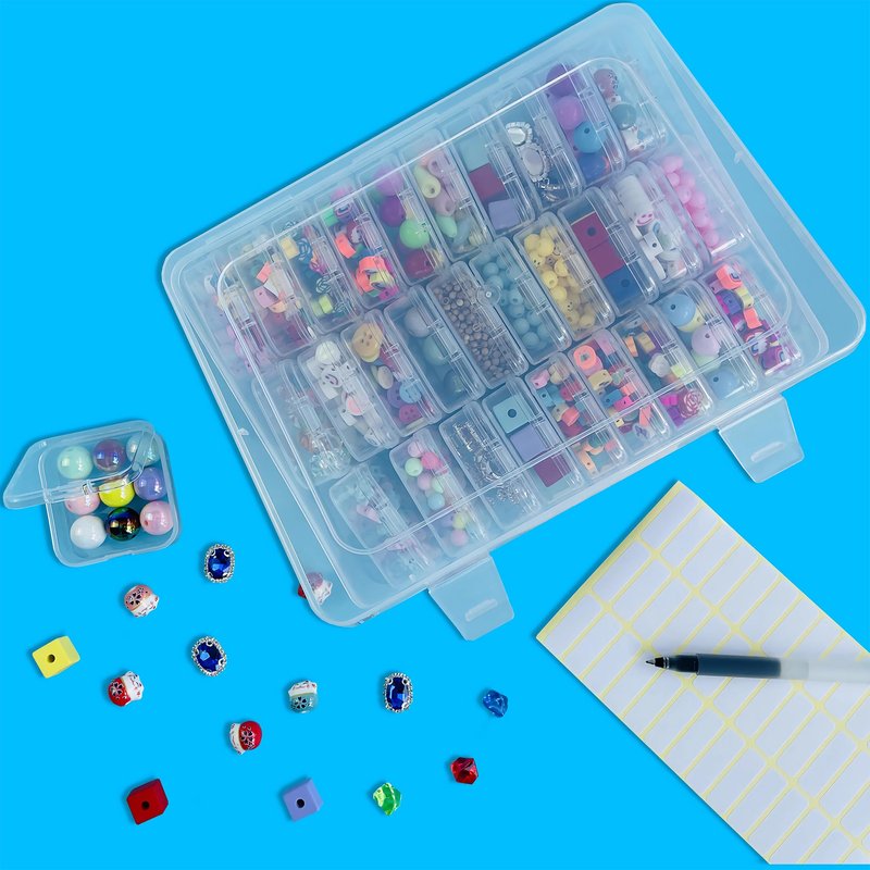 - 【PACKAGE INCLUDE】 1 Large transparent plastic organizer box with hinged lid, 30 mini transparent storage containers and 1 sheet label sticker used for mark. This is perfect to organize small items. Whether in jewelry making, hand-beading, storage splicing toys, office supplies, they all have a very good performance