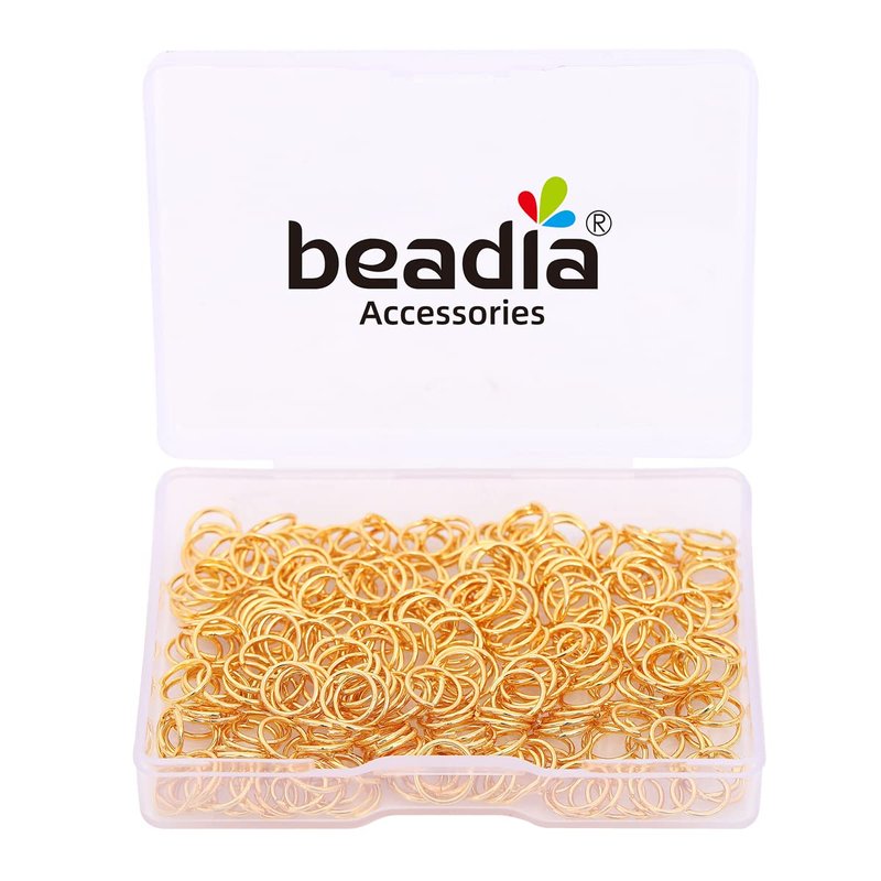 BEADIA 18K Gold Plated Jump Rings Non Tarnish 7mm 300pcs for Jewelry Making Findings