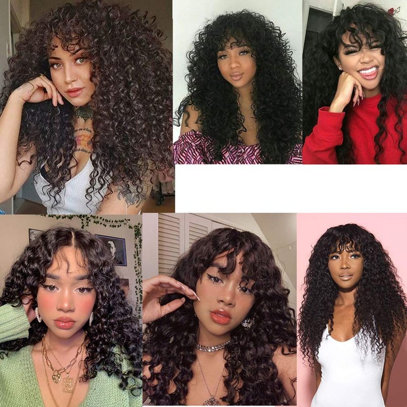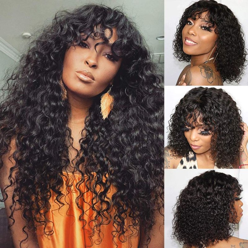 - 🎀Wig Quality: Water Wave Wig with Bangs Use High Quality Virgin Brazilian Human Hair, Soft and Fluffy, Light, Bouncy, No Smell, Comfortable Wear, Easy to Install and Style, Full and Thick, Can Be Curly and Restyled as You Like.
