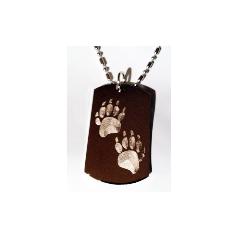 Bear Paws Walking Logo Symbols - Military Dog Tag Luggage Tag Key Chain Keychain Metal Chain Necklace