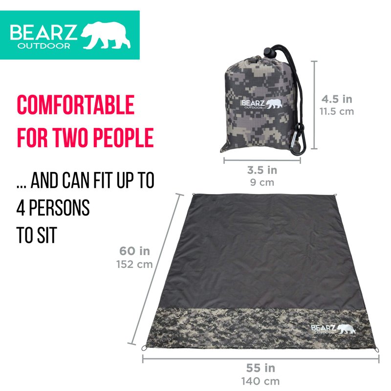BEARZ Outdoor Pocket Blanket - Waterproof Picnic Blanket, Compact Travel Blanket, Picnic Blankets Waterproof Foldable Lightweight for Beach, Hiking, Festival Accessories (Camo)