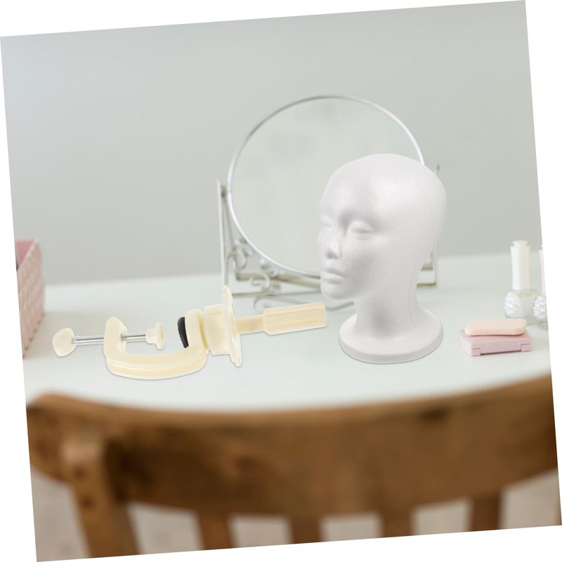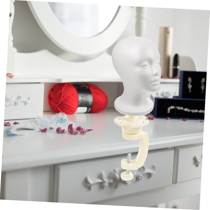 Beatifufu Headform Holder Tabletop Tripod Cosmetology Manikin Holder Cosmetology Manikin Clamp Salon Wig Head Stand Cosmetology Head Support Doll White Mannequin Head Iron Cosmetic