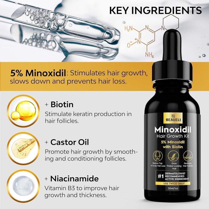 beaueli Minoxidil for Men Beard Growth Kit, Minoxidil for Women Hair Growth Kit, Hair Loss Treatments for Women Hair Regrowth Treatment, Minoxidil 5%