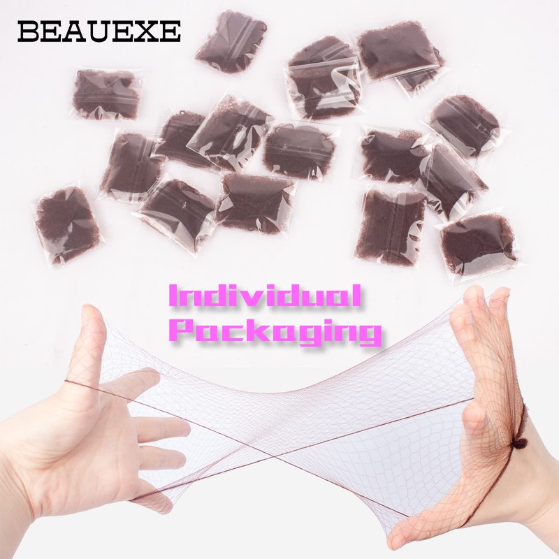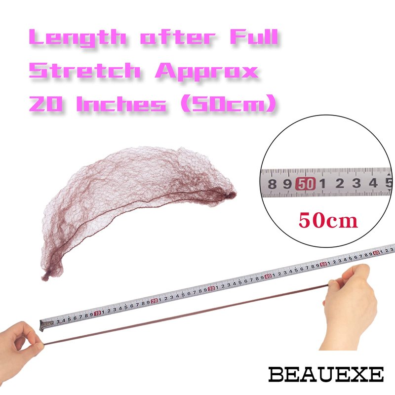 BEAUEXE- Professional beauty manufacturing experts. Each of our products like process to more beautiful you. Specification: Brand: BEAUEXE Product Name: BEAUEXE hairnets for women Product Size: 22 after fully stretch(8 -10 in natural state) Product Color: Dark brown hair nets Gender: Unisex Product Material: Premium nylon fiber Package included: 30PCS individual hair nets Purpose: Perfect for ballet dancer,nurse,bank clerk,hotel clerk,skaters or service employee who need to have their hair in a bun. How to use: A: Hair nets for women sleeping or food service: 1 Comb your hair or tie your ponytail 2 After stretching the net, grab the elastic edge and work your hair down from your forehead until all your hair is in the net 3 Adjust the hairnet position, can also be held in place with clips B:Hair nets for buns 1 Put your hair in a ponytail 2 Place the hair net over the rubber band 3 Stretch the hairnet and place the entire ponytail in the hairnet 4 Grab the ponytail caught in the hairnet and put it into a bun 5 Secure with hairpins OR Tie your hair into a bun.Place the hair net directly over your bun, then secure with hairpins How to care: Hairnets can be used multiple times as long as they are used properly. Do not tear violently and place away from sharp objects. Tips: Color may vary due to the difference between the display or lighting , Please in kind prevail.