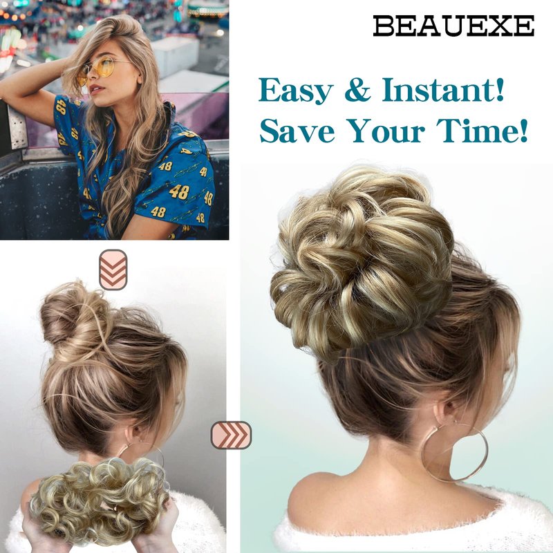 - SUPER EASY-Hair always can't do a favorite look? Upgrade your updo hair bun with BEAUEXE's messy bun hair piece! Fluffy hair with elastic band can easily hold your hair also increase your hair volume quickly .