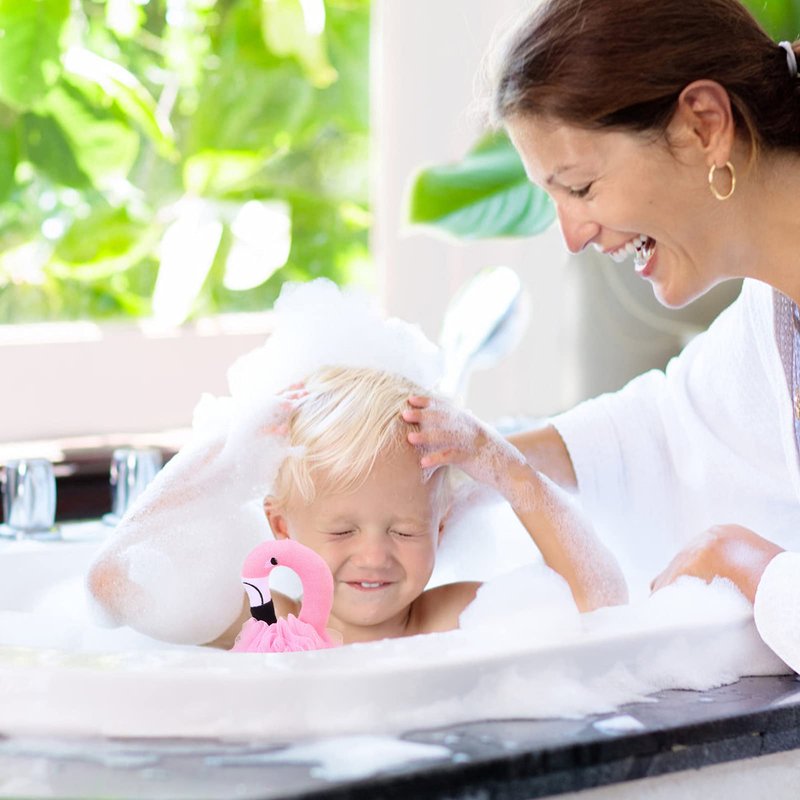 Beaupretty 3PCS Shower Loofah Bath Sponge Mesh Pouf Scrubber Ball Body Washer Kid Flamingo Body Exfoliator Foaming Mesh Nets Skin Clean Exfoliating Scrubber for Bathroom