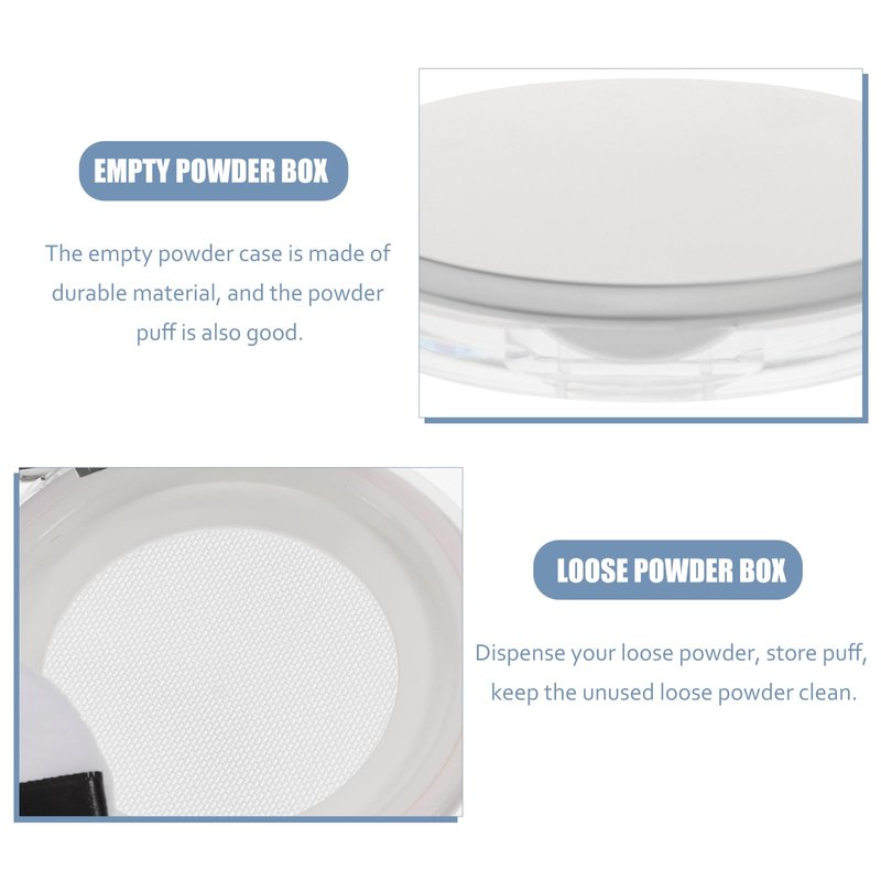 - Loose powder box mini design saves your space in your bag when shopping outside. Partner for your travel. You cant miss loose powder container.
