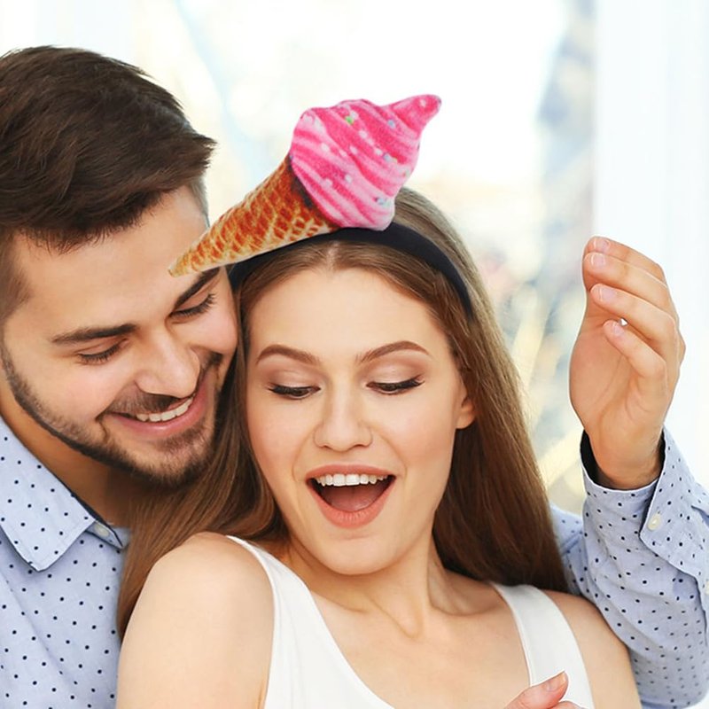- Dessert headwear: Not only does this ice cream headband serve a practical purpose, but it also adds a touch of cuteness to your look. Ice cream headband cone funny food on hair hoop ice cream party hat food vendor costume headpiece for kids adults