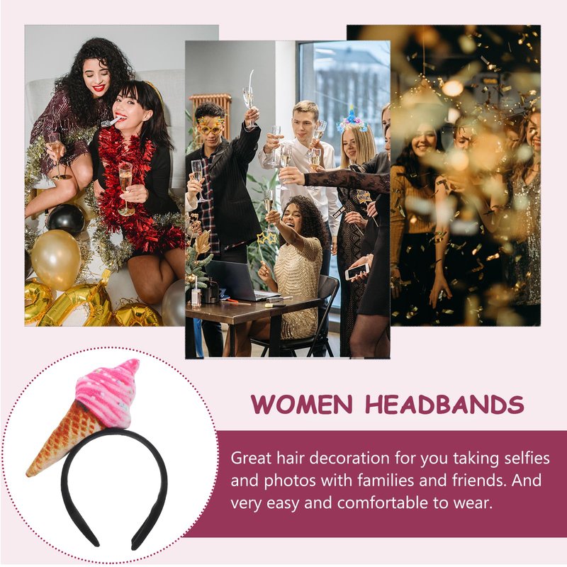 - Ice cream party supplies:Whether you have long or short hair, straight or curly, this headband will work for you. Ice cream headband dress up ice cream cone headband ice cream party hat costume party accessory headband novelty headwear dessert headpiece food cosplay