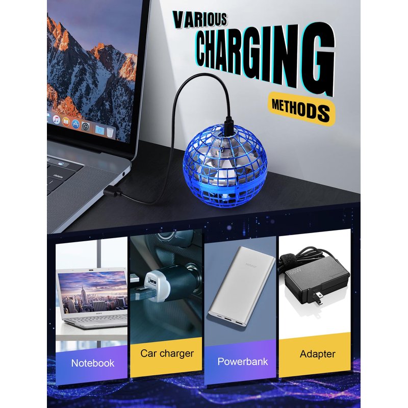 - 【Smart Indicator and Quick Charge】The handy indicator light on each orb pro flying spinner shows when charging is in progress and turns off when fully charged. A quick 20-minute charge gives up to 10 minutes of flight time, ensuring uninterrupted fun