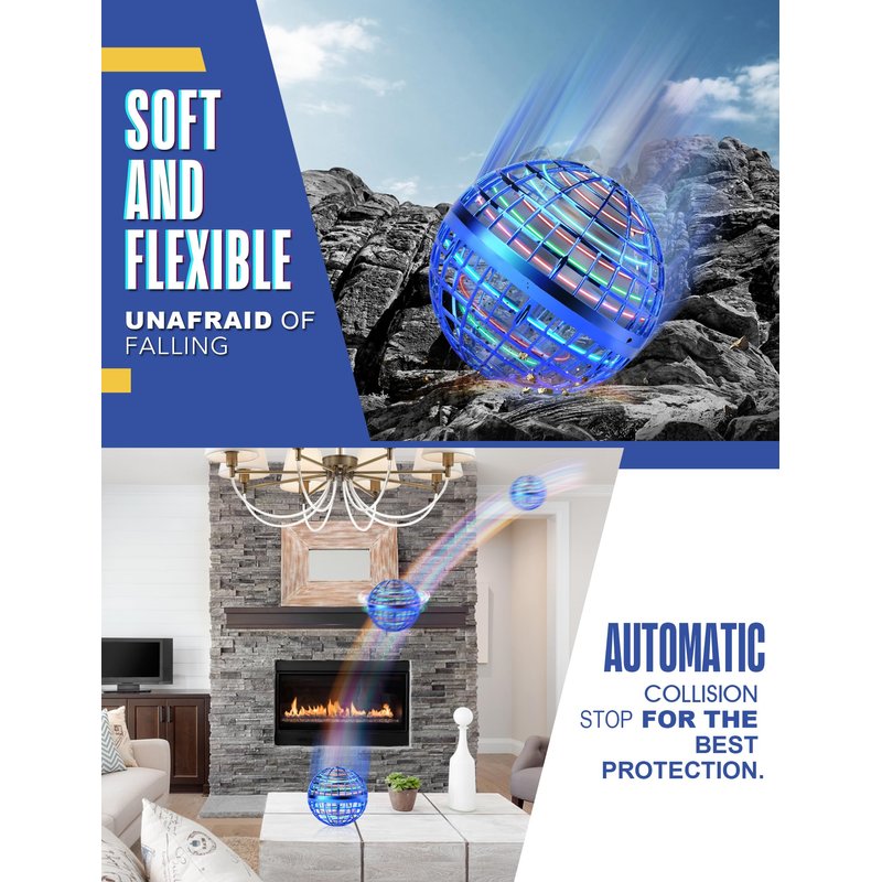 - 【High-Tech Flying Orb Ball Set of 2】Experience the fun with our set of two hand-controlled drone balls, each featuring a gyroscope and smart AI chip. It glows in vibrant colors, offering varied flight paths, skills, including boomerang effects