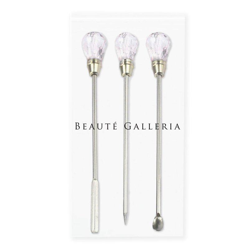 Beaute Galleria 3 Pieces Nail Art Stirring Rod DIY Tools Spoon Spatula Needle Stick for Powder Liquid Glue Rhinestone Acrylic UV Gel Mixing Manicure Accessories