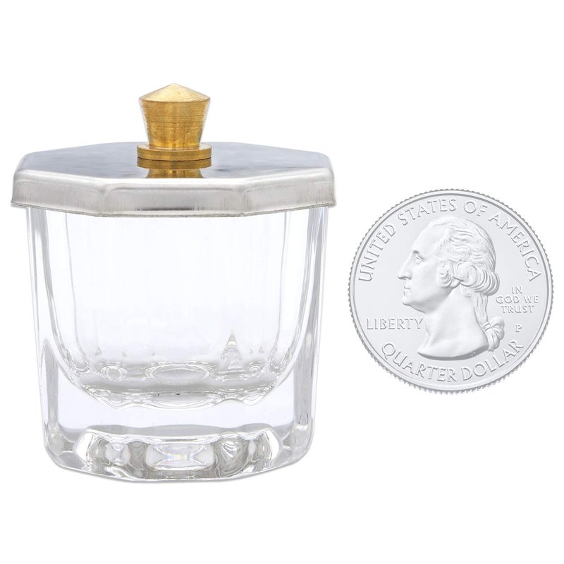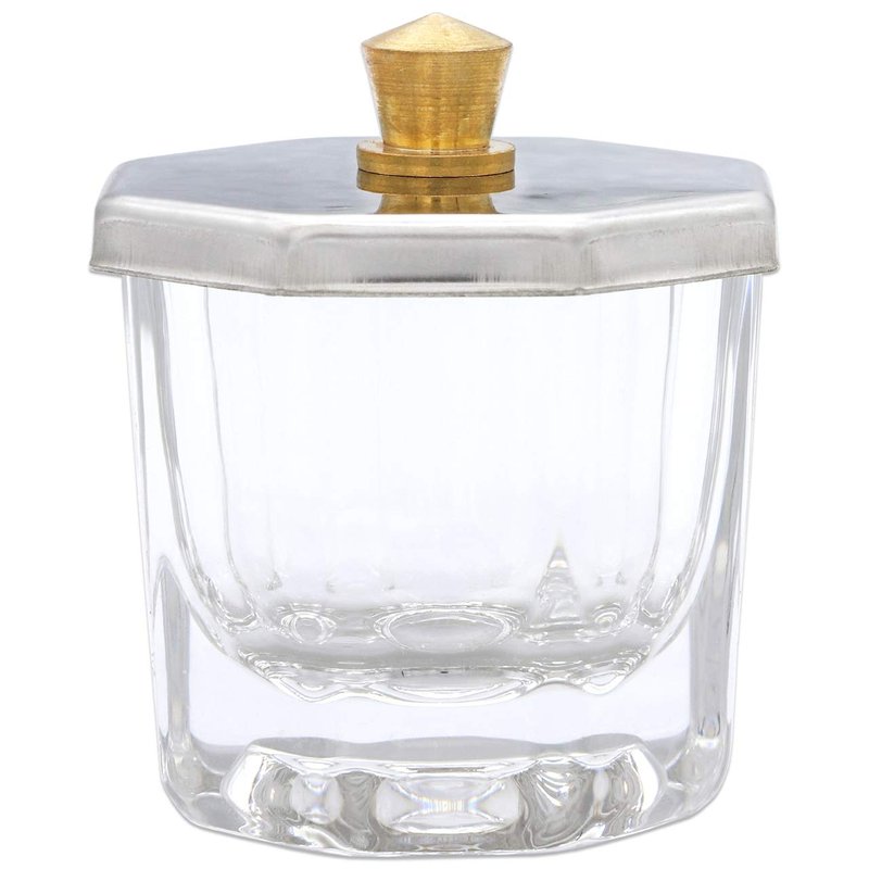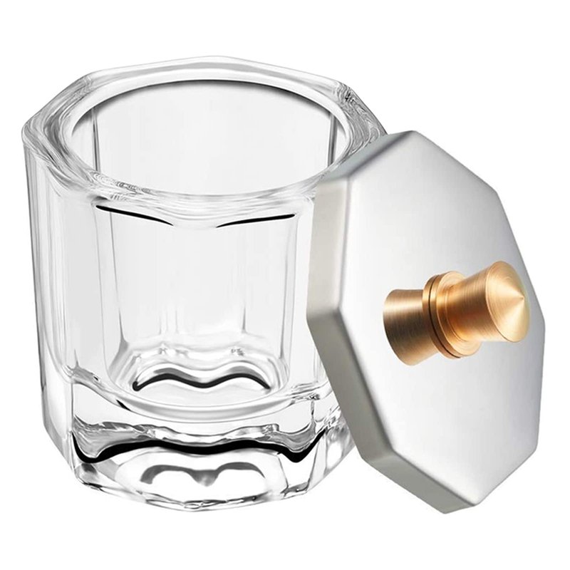 Beauticom Crystal Glass Dappen Dish for Acrylic Nail Dip Powder, Monomer, and Nail Polish Remover (Octagon Shape w/Stainless Steel Lid, 1 Piece)
