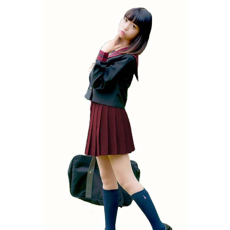Beautifulfashionlife Women`s School Uniform High Waist Pleated Skirts Solid Color(2XL,Wine Red)
