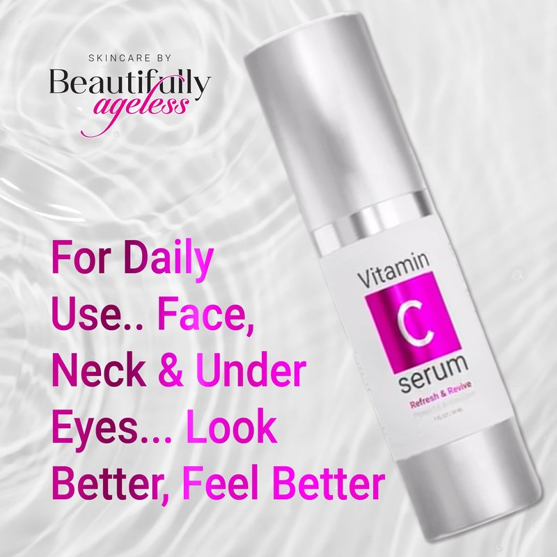 Introducing the Beautifully Ageless Vitamin C Face Serum, a lightweight, fast-absorbing serum that delivers deep hydration and a smoother complexion. This powerful serum is formulated for all skin types and tones, featuring a non-greasy texture that reveals younger-looking, more radiant skin with consistent use. Infused with a potent blend of Vitamin C, antioxidants, and nourishing botanicals, it brightens and evens out your skin tone while diminishing the appearance of fine lines and wrinkles. Free from parabens, harmful chemicals, and fragrances, the Beautifully Ageless serum is a clean, ethical skincare solution. Vegan and cruelty-free, itβs trusted by thousands of happy customers and proudly made in America. Discover a more youthful glow and enjoy visible improvements with each application. Experience the power of nature with our Vitamin C Face Serum β formulated to give you a radiant complexion while keeping your skin healthy, moisturized, and beautifully ageless.