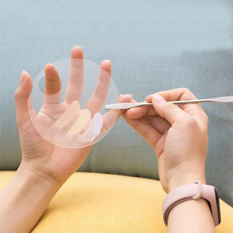- Easy to use: flat head for mixing color, pointed to extract the cream.This hand palette will not get the back of your hand dirty and easy to use. Gently wipe off the residue on the surface with a soft paper towel after using.