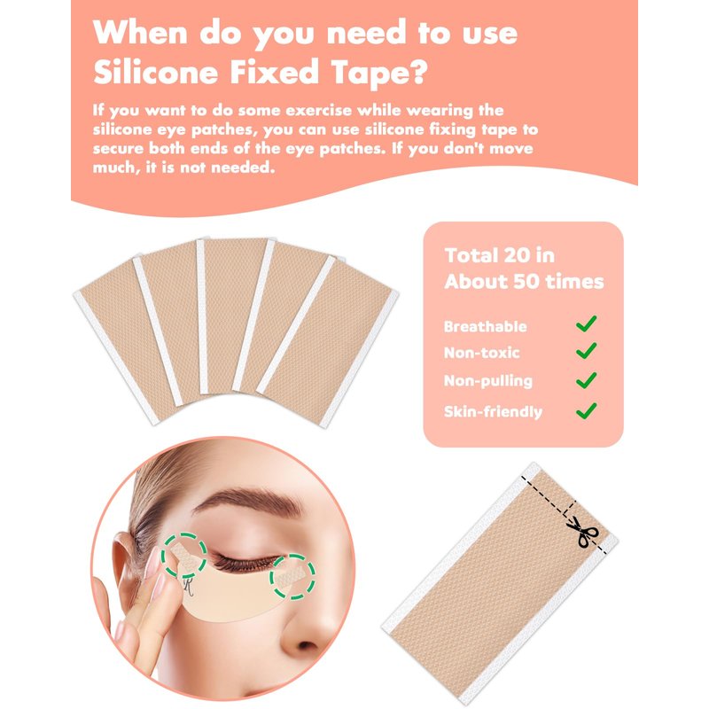 - [SILICONE FIXING TAPE]: Generally, Beautistin silicone eye patches do not require adhesive. But if you want to use the eye patches while exercising or working, you can use Silicone Fixing Tape. A total of 20 inches of fixing tape is made of breathable, skin-friendly silicone and can be used approximately 50 times.
