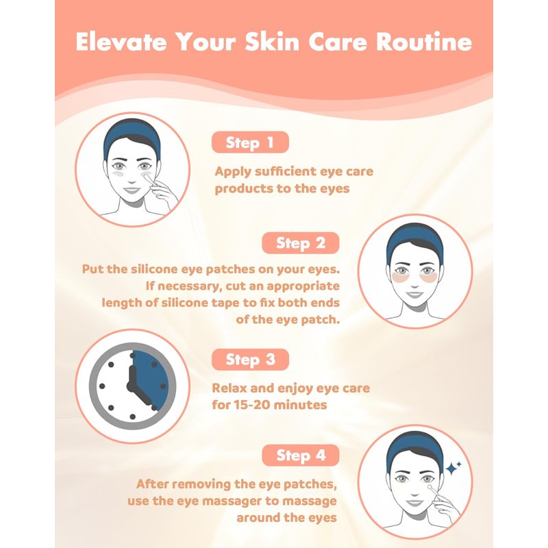 - [HOW TO USE]: Apply your eye cream under your eyes, then apply the silicone eye wrinkle patches to prevent the eye cream from evaporating quickly. (If necessary, use silicone fixing tape to prevent slipping) After waiting for 15-20 minutes, remove the silicone eye patches and gently massage around the eyes with a metal massage stick.
