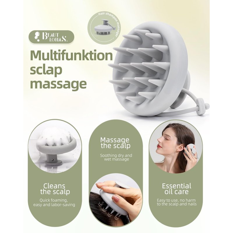 BEAUTLOHAS. Scalp Massager Shampoo Brush, Scalp Scrubber with Soft Silicone Bristles, Scrubber Scalp Exfoliator for Dandruff Removal,Hair Grouth,Wet Dry Hair Massager Brush for All Hair (Gray)