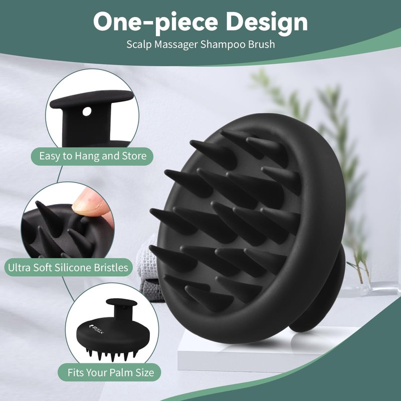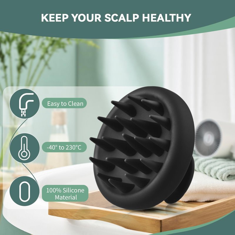 - Fit Size: The palm-sized design fits perfectly in your hand and prevents the scalp brush from slipping.You will enjoy a deep scalp massage with the soft silicone bristles of the hair massager. Of course, the soft silicone hair scrubber can also be used without shampoo and on dry hair and massage scalp.
