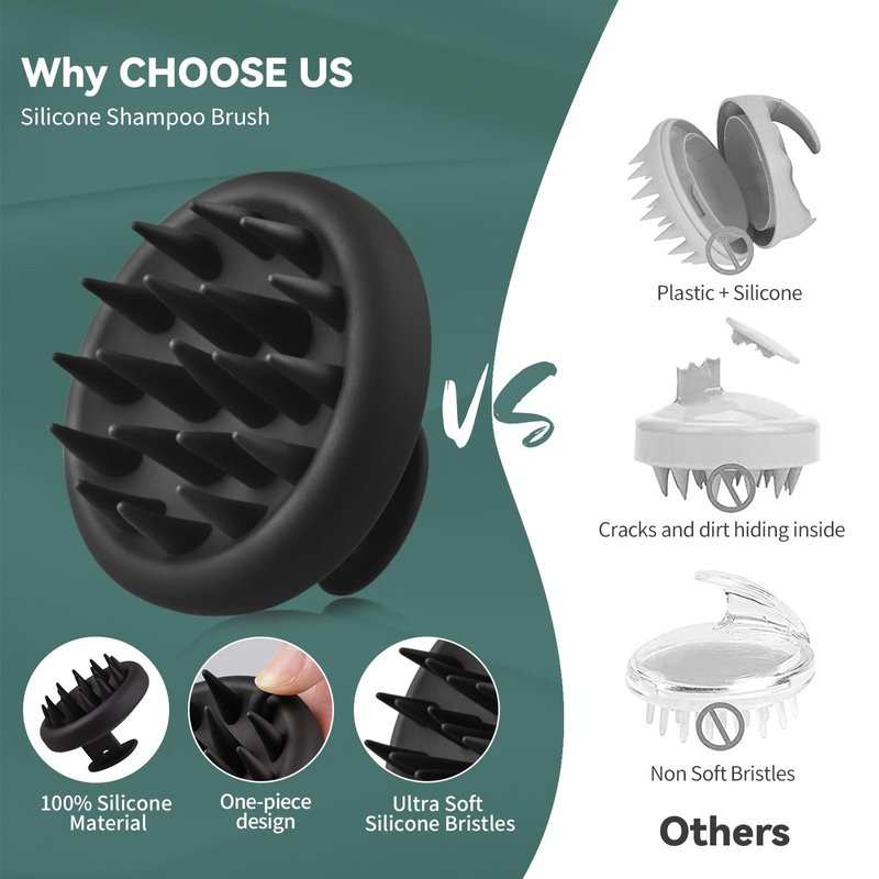 - 100% Soft Silicone Material: Our soft silicone shampoo brush is made from 100% food-grade silicone and is therefore completely free from BPA, BPS and other potentially harmful ingredients. Competing products are usually made of hard plastic and only have a thin silicone inlay.