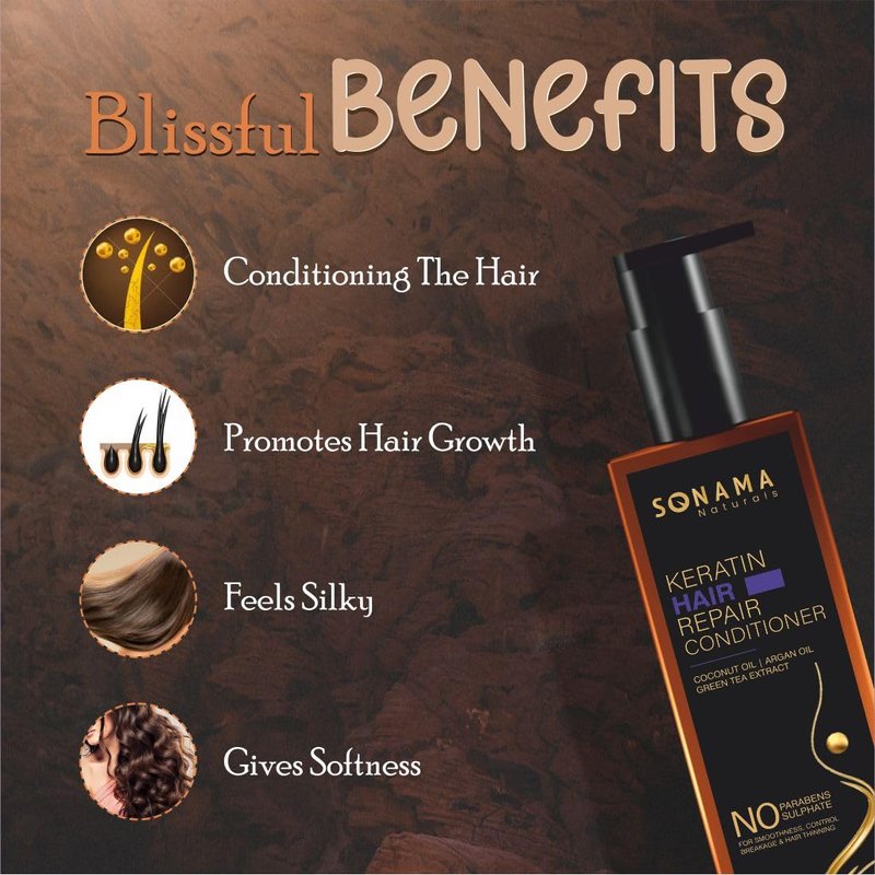 BEAUTY BRATS Sonama Naturals Keratin Hair Repair Conditioner - 200ml | Anti-Hair Fall Conditioner, Reinforcing & Nourishing for Hair Growth