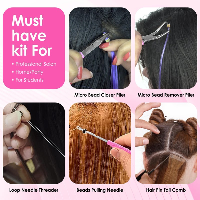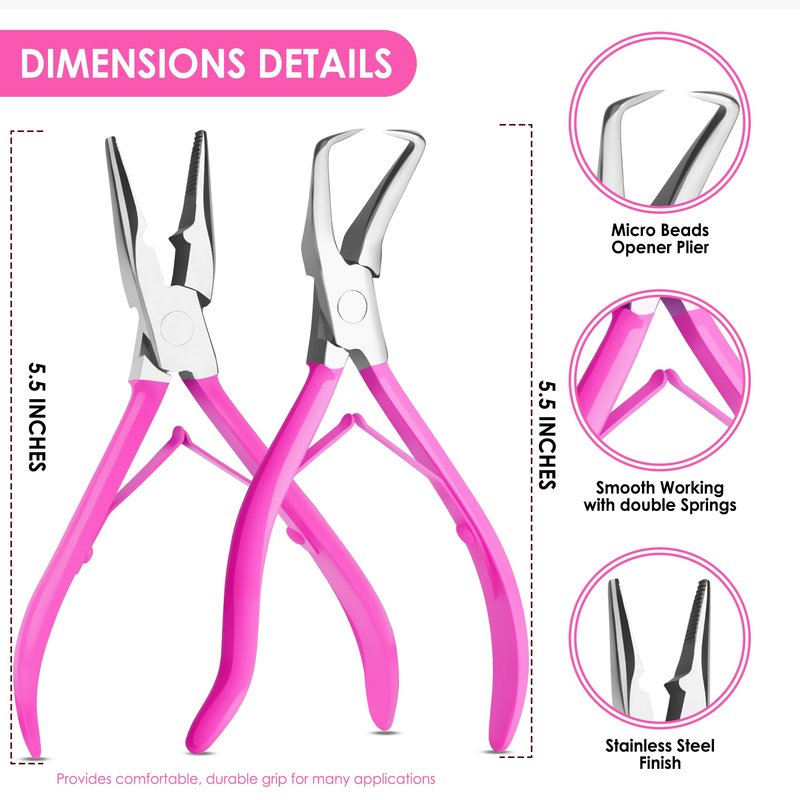 - Stainless Steel Construction: The hair extension tools are made of stainless steel for durability and easy cleaning.