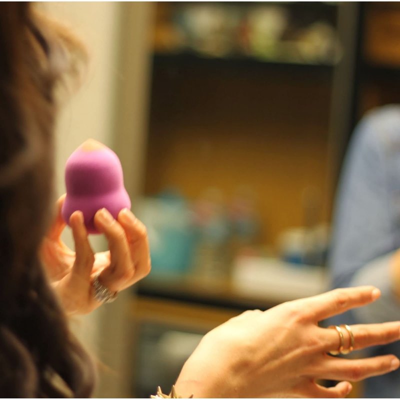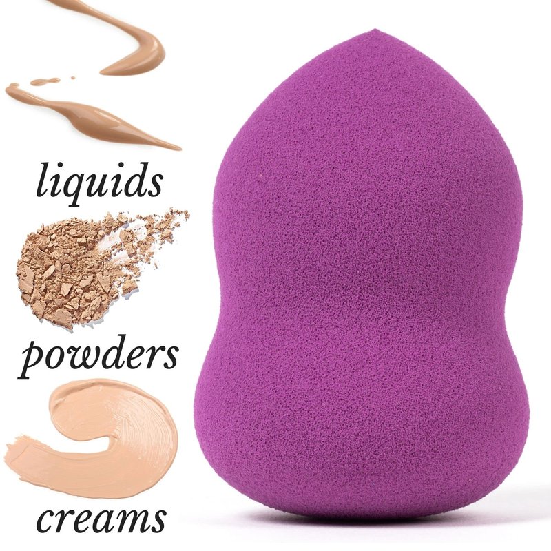 - Purple Pear: Nice for novices, since its shape assures you a firm grip. It's more suitable for large areas and can be used for neck and cleavage. Most often used for blending liquids, but also works well to highlight your cheekbones.