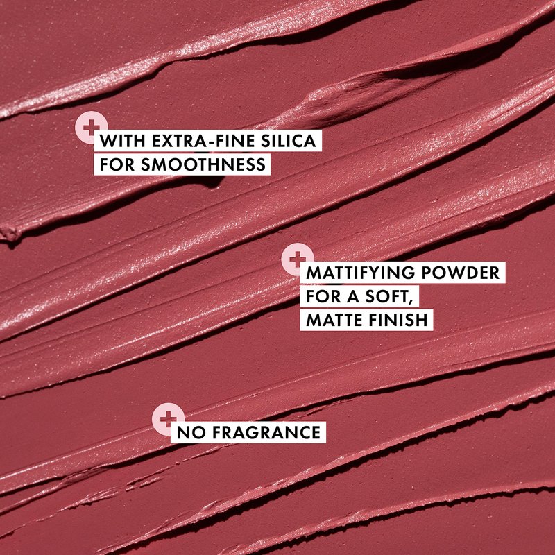- Key Ingredients: Lightweight but Cushioning Oils for a creamy texture. A unique mix of Synthetic Waxes for perfect color adhesion and easy application and blending. A Silicone Elastomer Gel for silky smoothness and a matte finish. Extra-fine Silica for texturizing and smoothness. Mattifying Powder for a soft, modern matte finish.