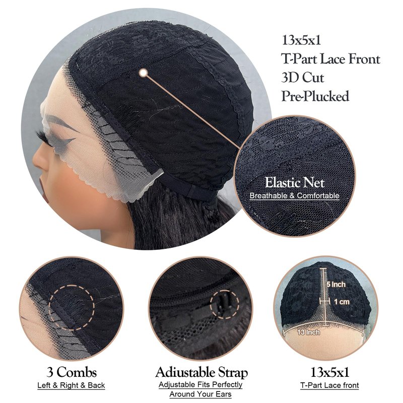 - Lace Front: T part lace color is transparent which can fit all the skin tones, made of real Swiss lace .The ingeniously designed internal structure fits closely with the shape of the head, totally glueless wig