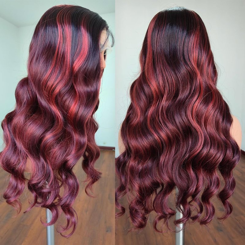 - Quality Service: We have a professional after-sales team and factory. If you have any questions about this Burgundy Red Highlight Loose Wave Wig, please contact us and we will be happy to assist you