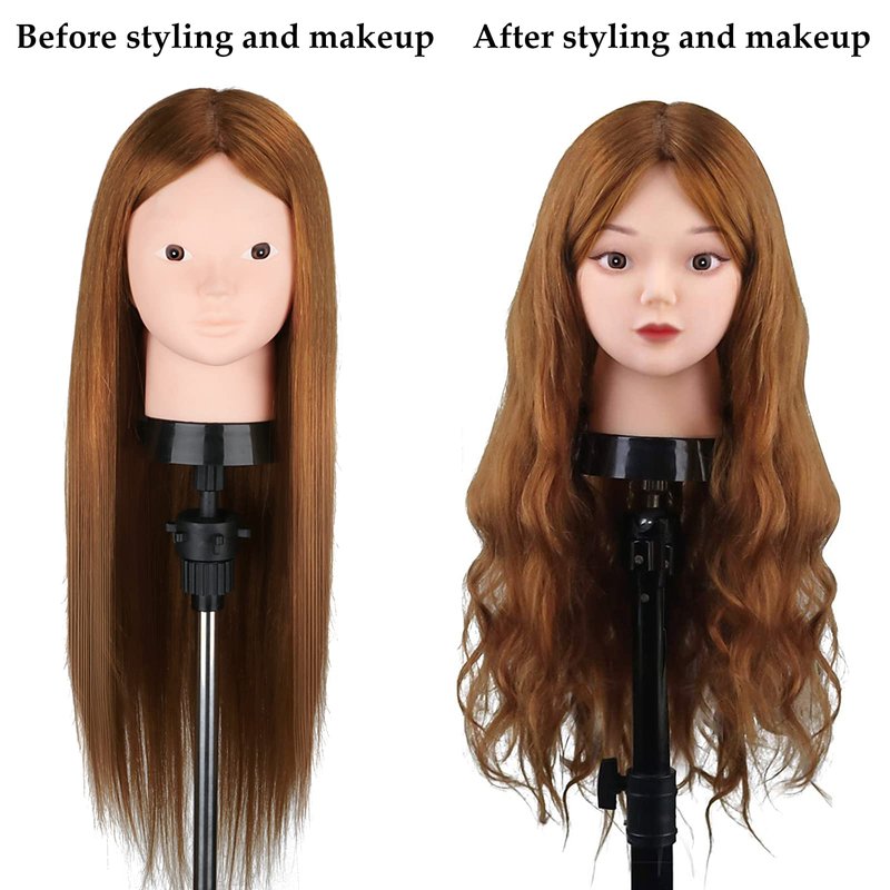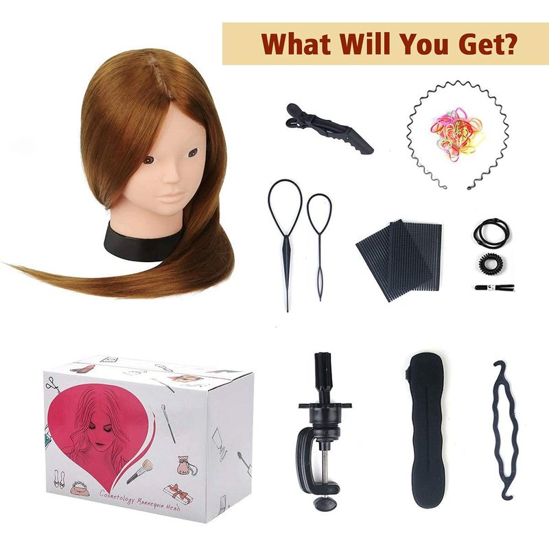 - 【Hair Condition】80% real human hair. Total length 23.5inch, from forehead to tip of hair in the back, Contains a free table clamp stand and DIY hair styling braid set, you are free to design the hair style as you like to improve your level of hairdressing