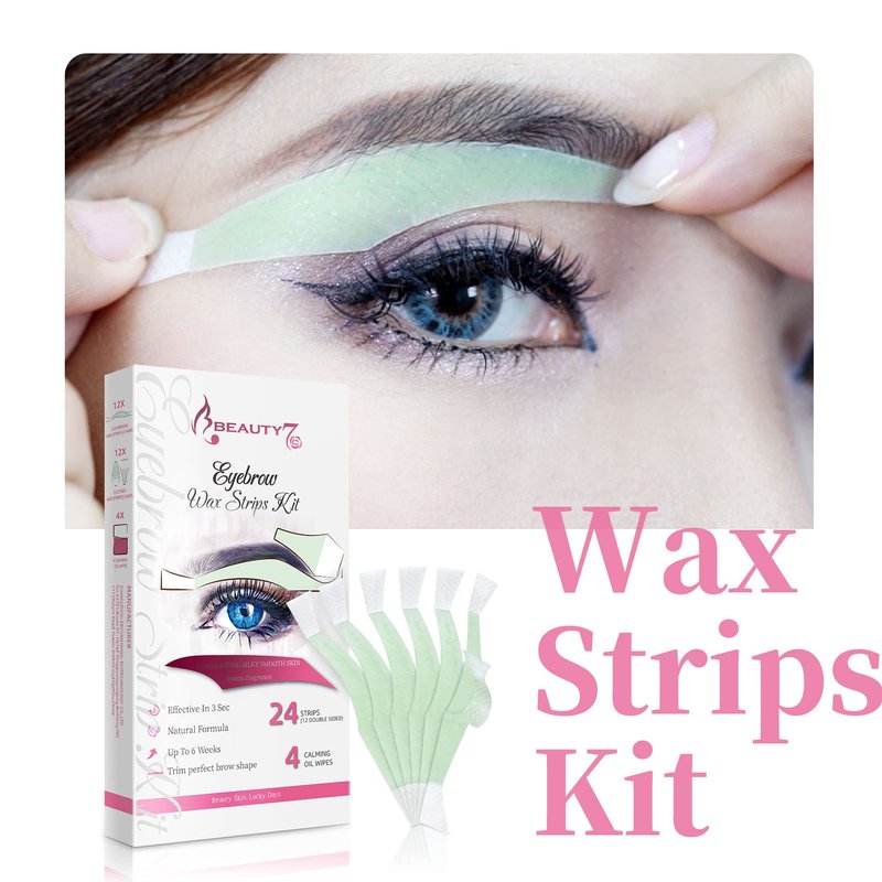 Beauty7 Eyebrow Wax Strips Kit Facial Wax Strips Hair Removal Eyebrow Shaper at Home Waxing 24 Strips 4 Calming Oil Wipes for Sensitive All Skin Types Women (Eyebrow Wax Strips)