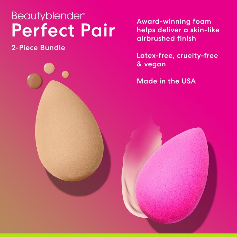 Beautyblender® | Original Pink + Nude Beauty Blender 2-Piece Bundle for Blending Foundations, Powders, and Creams, Super-Soft Foam for Streak-Free Application, Made in the USA, Reusable, Washable