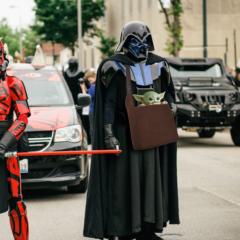 Beautyflier Cosplay Carrying Satchel Bag Compatible with Din Grogu Plush Toy Stuffed Animal Puppet Stuffed Character Vintage Cartoon Props Shoulder Crossbody Bag for Movie Fans (Toy Not Included)