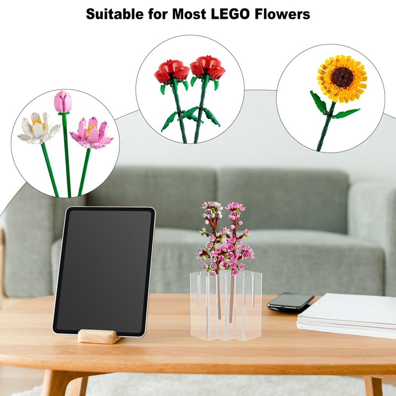 - 【Premium Material】The Lego flowers stand is made of 3mm premium acrylic, which is durability and a sleek, modern aesthetic that complements any decor.