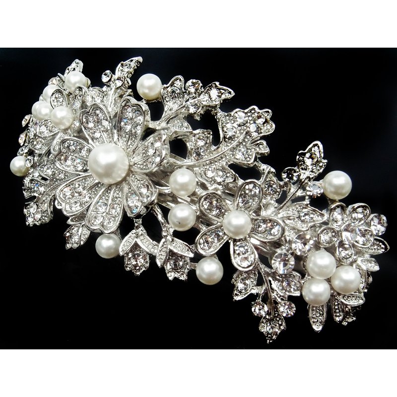 Beautyxyz Bridal Headpiece with Imitation Pearl Rhinestone hair barrette hair clip