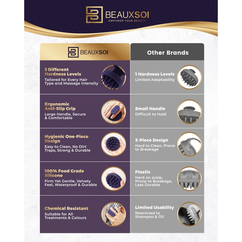 BeauxSoi's got you covered. Choose a brand that's taken the time, energy, and research to create and redefine the scalp massager hair growth. Try our silicone head scrubber today, purposefully made for your hair type.